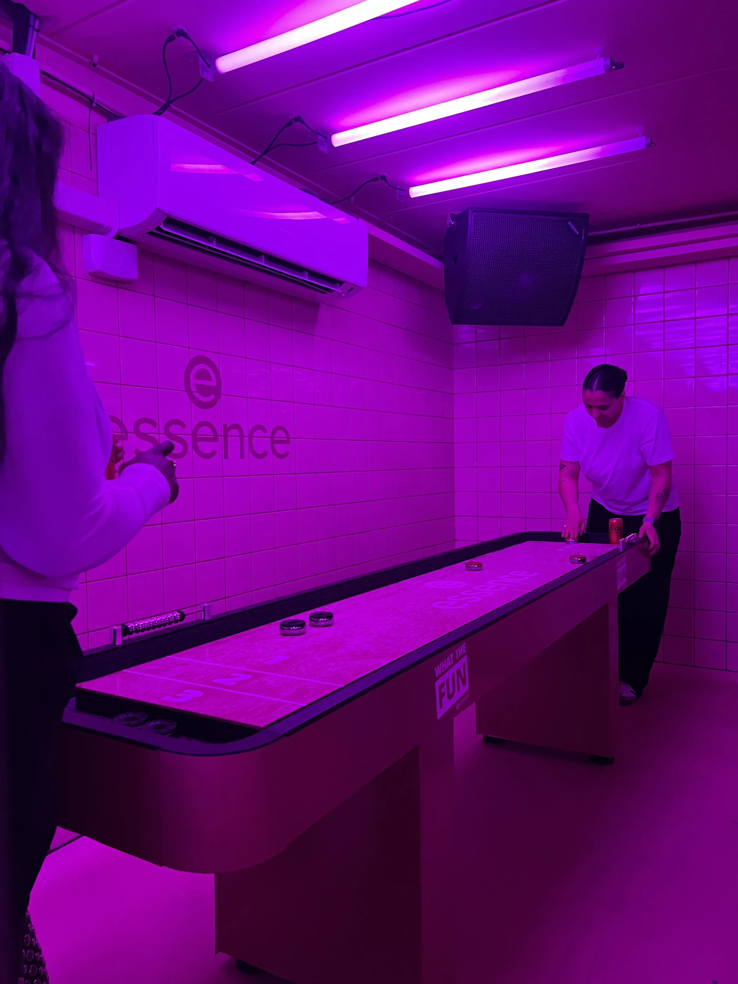 Shuffleboard är ett underhållande och socialt spel som går ut på att skjuta puckar längs ett långt bord med målet att få dem att stanna i olika poängzoner. Två spelare eller lag turas om att spela sina puckar, där precision och känsla spelar stor roll. Den som placerar sina puckar bäst, helst längst bort utan att de ramlar av bordet, vinner omgången. Poäng delas ut beroende på hur nära kanten puckarna stannar, och man spelar vanligtvis till ett visst antal poäng,