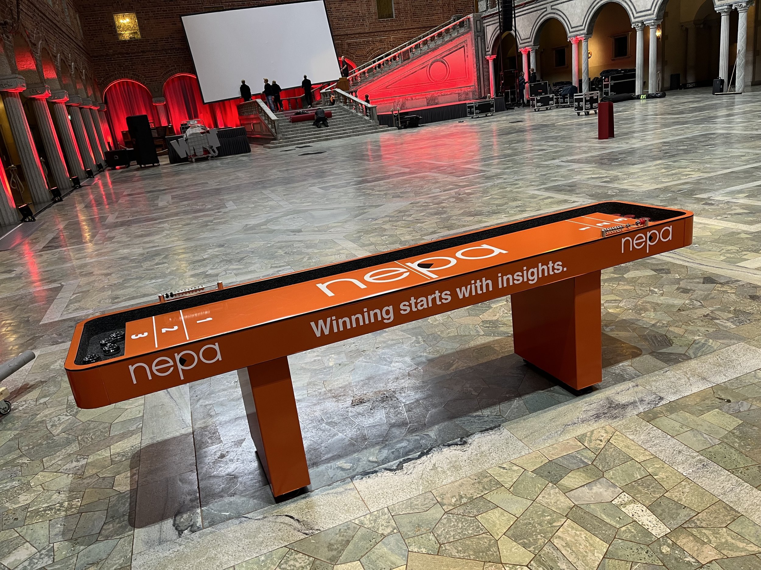 Hos oss kan du hyra ett shuffleboard med eller utan egen branding.